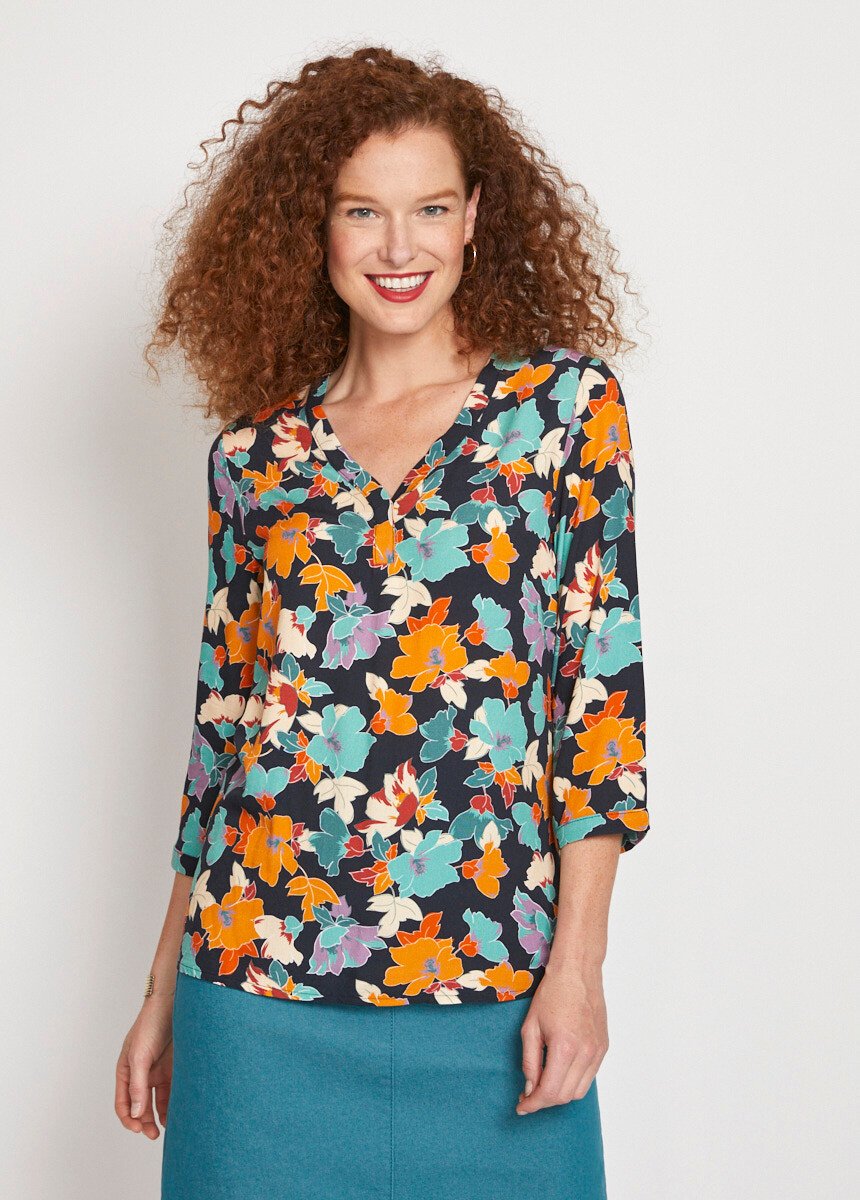 Floral_print_tunic_3/4_sleeves_Navy_background_FA1_slim Floral_print_tunic_3/4_sleeves_Navy_background_DO1_slim
