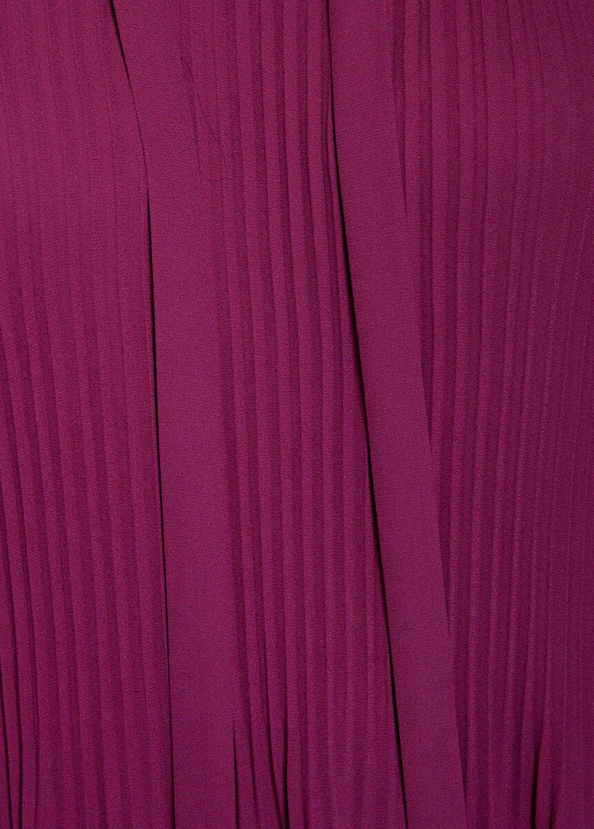 A modern, elegant blouse with fancy pleating that fades at the hem. Ruffled collar on V-neckline, fastened with tie-knot at front. Flat shoulder yoke. Long sleeves, buttoned bracelets.