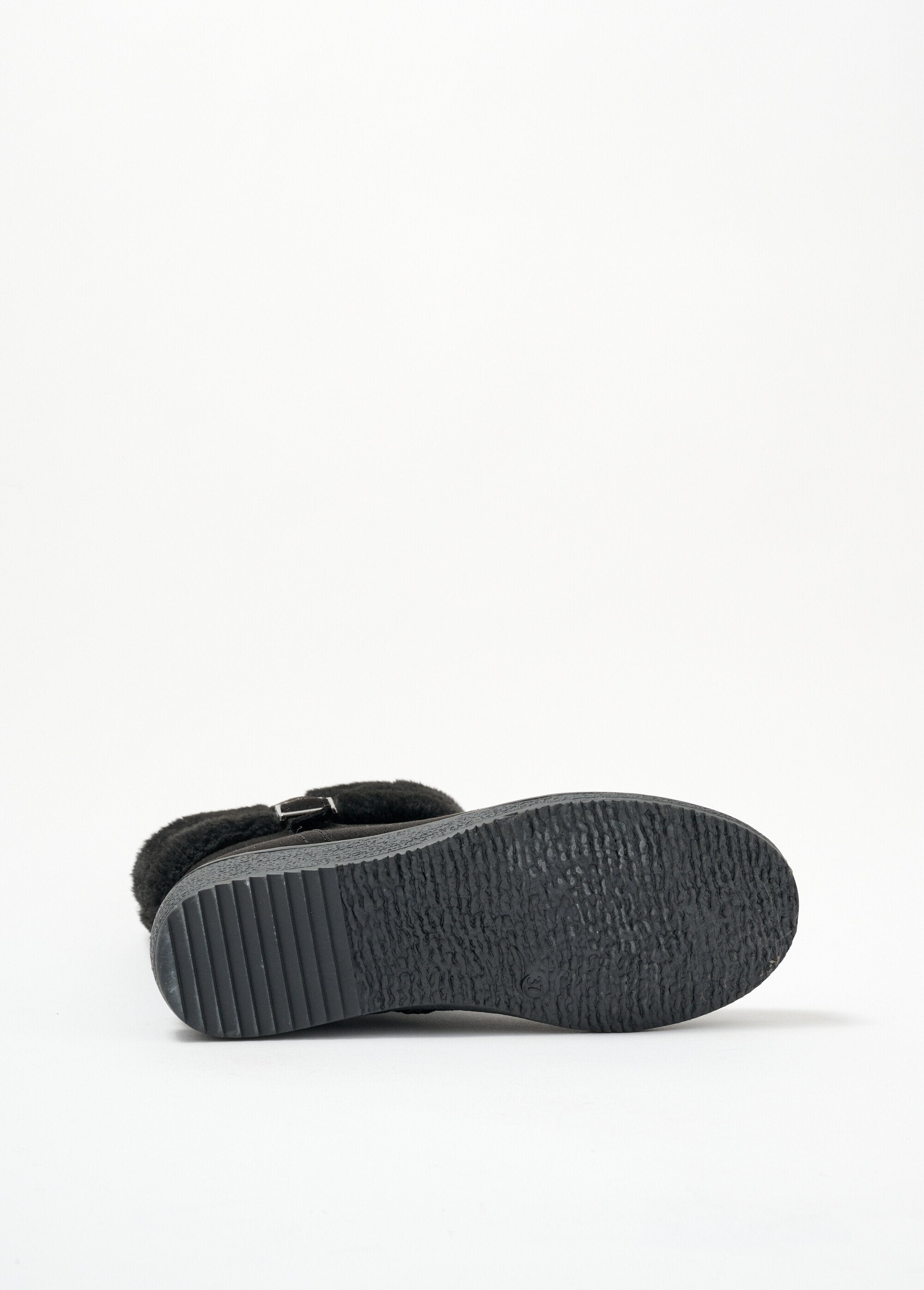 These wedge boots will seduce you with their modern look and cozy comfort. Faux-fur lining held in place by a fancy placket with adjustable buckle mounted on elastic. Inside zipper for easy slip-on.