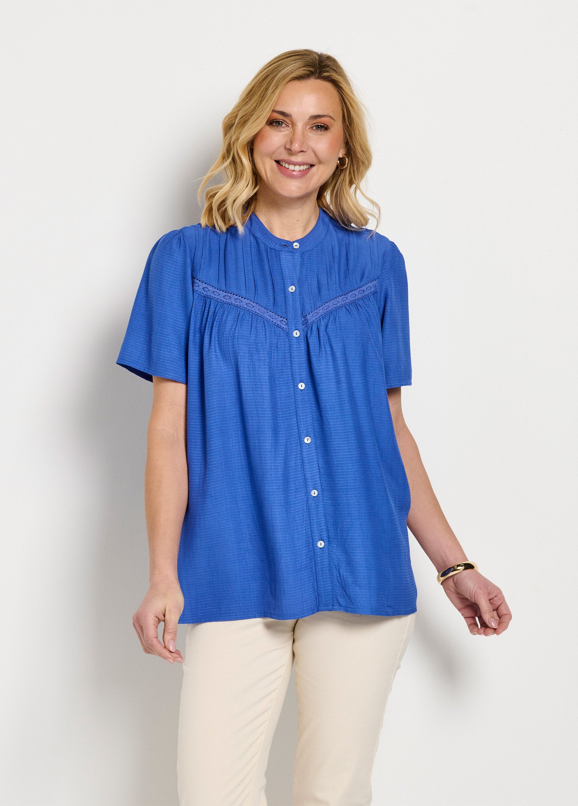 Light and airy, this beautifully full tunic is a true delight! Made of voile printed with golden feathers, it's lined to prevent any see-through. Batwing sleeves and a softly rounded hem finished with a bourdon. Rounded, topstitched neckline. Made in France.